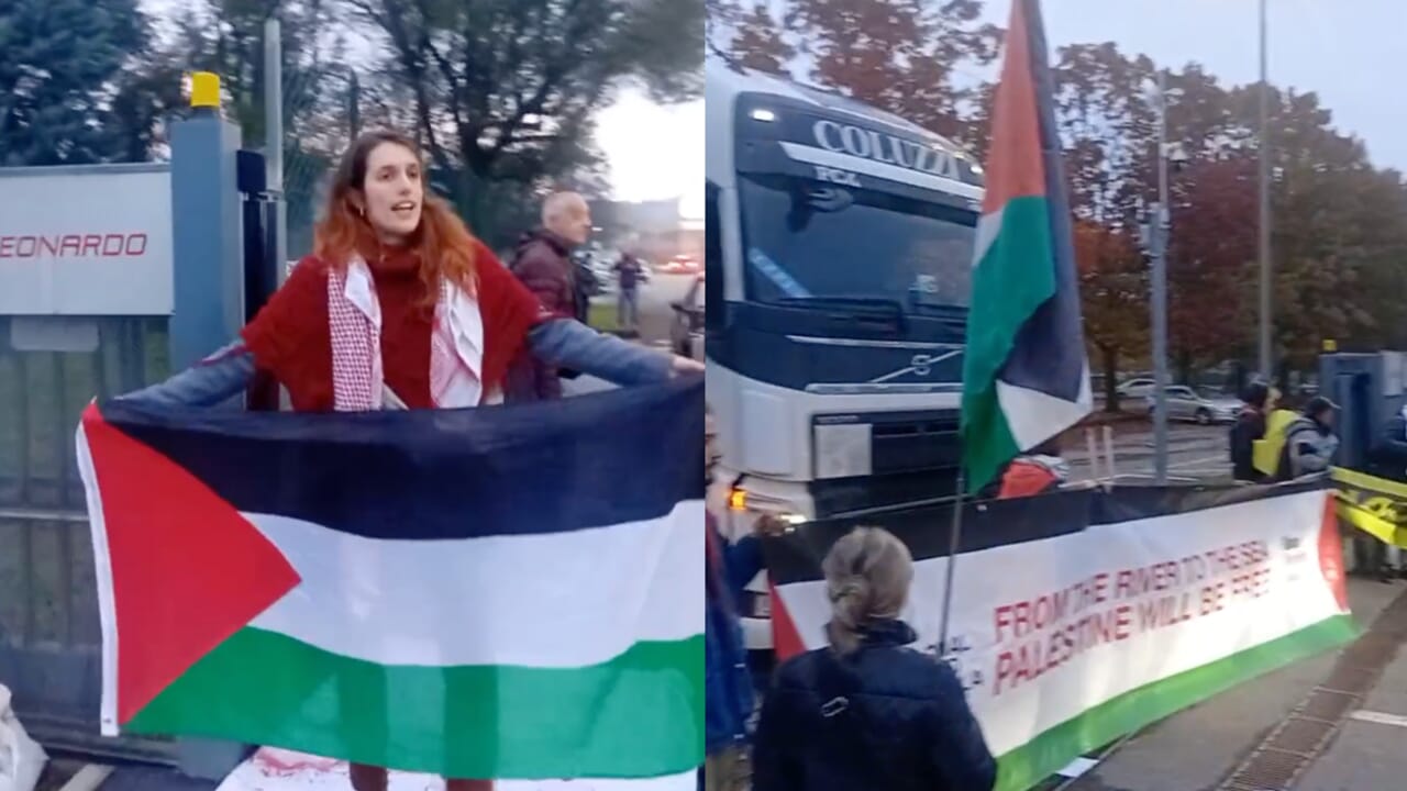 Nerviano, 22 ottobre 2025– Questa mattina alle 7.40 una ventina di attiviste di Ultima Generazione, Palestine Action Italia, BDS, Global Movement To Gaza e Milano per la Palestina hanno bloccato l’ingresso principale della sede di Nerviano della Leonardo Spa. Le manifestanti hanno dialogato con i dipendenti dello stabilimento, portando un messaggio di responsabilità collettiva nel interrompere i rapporti con Israele. Dopo poco, sono giunti sul posto i carabinieri che hanno identificato le persone che hanno preso parte all’azione.